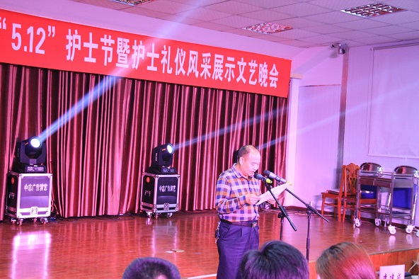 母映松局长致晚会开幕词,对本届职工运动会的成功举办表示祝贺,赞扬各参赛选手在活动中展现的团结协作、奋力拼搏、永不言弃宝贵精神;对我院荣获县卫计局优秀护理工作者称号的三名护士表示祝贺,表达了对全院护理工作者的节日祝福和敬意,充分肯定了她们为医院护理工作作出的贡献,鼓励她们继续弘扬南丁格尔精神,甘于奉献、救死扶伤、实行革命人道主义精神,将职业道德精神发扬光大,鼓励全院职工再接再厉、勇攀高峰。