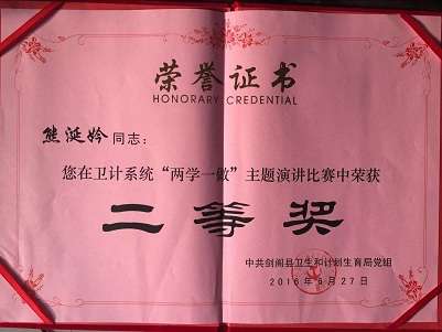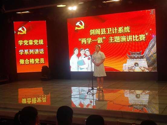 2016年6月27日,我院参加了剑阁县卫行系统举办的“两学一做”主题演讲,全系统共有县局、县直属单位、乡镇卫生院一共20位选手参加了演讲比赛;我院选手熊涎妗、罗丹在演讲比赛中,紧扣主题内容、语言表达清楚、形态仪表大方。比赛中,紧紧围绕“学党章党规、学系列讲话,做合格党员”主题,结合自身工作实际,用富有感染力的表达、鲜活真实的事例和充满激情的语言,谈理想、绘人生,声情并茂,旁征博引,从不同角度诠释对“两学一做”的深刻理解,抒发对本职工作的无限热爱,表达立足本职、恪尽职守、创先争优的决心,彰显了当代党员干部积极进取、奋发向上的良好精神面貌。整场比赛紧张而又激烈,高潮迭起,精彩纷呈,现场观众不时发出阵阵掌声。