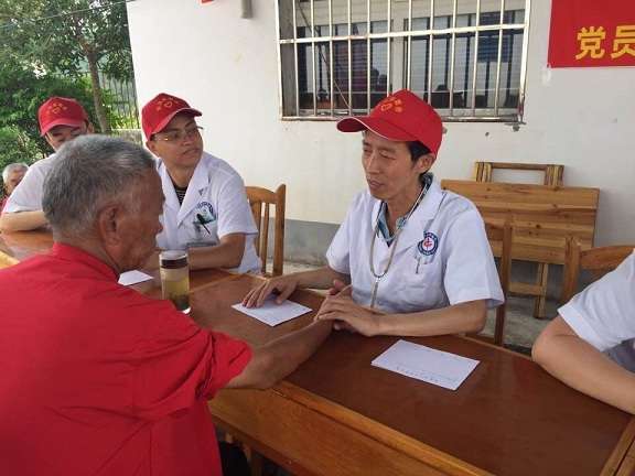 门诊医技支部党员按照分工,为老人们进行了常规健康检查,针对高血压、冠心病、糖尿病等老年人易患疾病,医护人员提出了预防保健和治疗建议,手把手教授老人自己测试血糖的方法。对大家提出的问题,给予耐心细致的解答,并叮嘱老人们要注意保护身体,注意饮食卫生。程文章为老人耐心诊治处方,聂剑雄现场为老人处置伤口。