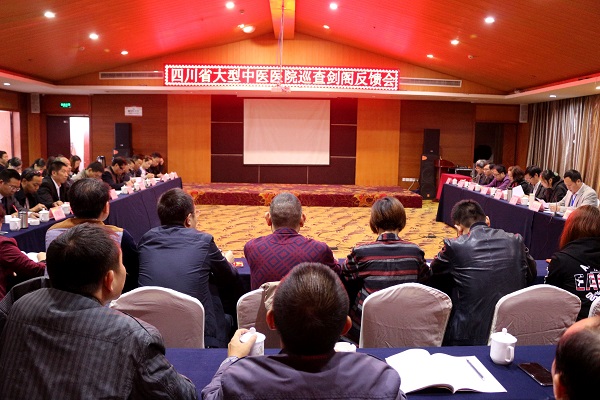 10月17日,四川省中医药管理局大型中医医院巡查组一行9人在省中管局主任科员贺莉的带领下到我院进行巡查。经过四天紧张工作圆满完成巡查任务,10月20日,在普安皇都酒店会议室召开了“四川省大型中医医院巡查剑阁反馈会”。专家组全体成员、广元市卫计委巡视员李坤禄、剑阁县人民政府副县长郭扭只、县卫计局党组书记母云斌、剑阁县中医院领导班子成员、各科室主任、护士长及职工代表等数十人参加会议。