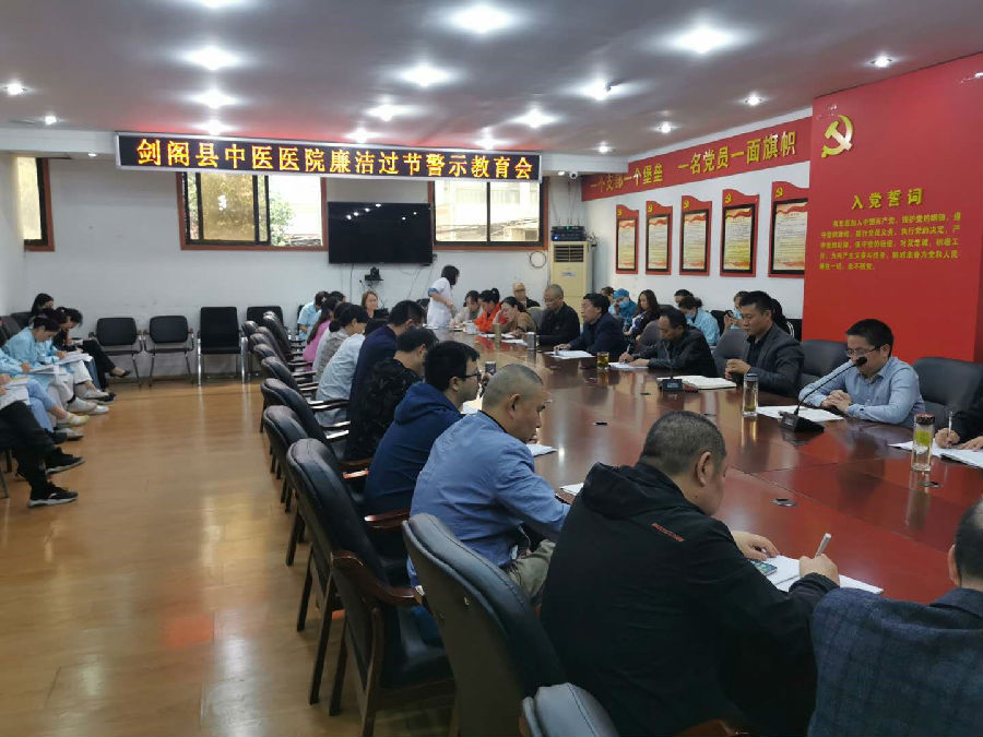 中秋、国庆将至,为深入贯彻落实中央八项规定精神,坚决抵制“四风”,预防各类节日病,切实做好节日期间疫情防控工作,营造清正廉洁、文明节俭、平安祥和的节日氛围,2020年9月28日,剑阁县中医医院召开了中秋国庆节前廉洁过节警示教育会,医院领导班子成员、全体中层干部参加会议。